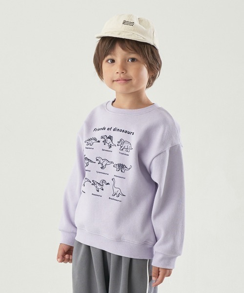 [表コットン毛玉バイバイ] 表面はコットンのみを使用して毛玉になりにくいT/C裏毛を使用。 図鑑のように並んだ働く車と恐竜のプリントがユニークなアソートスウェットです。 ワントーンプリントなので、柄物ボトムスとも合わせやすいのも嬉しいポイント。 裏起毛であたたかく、冬の通園通学、遊び着におすすめのアイテムです。 ※掲載画像の商品の色味は、光の照射や角度により実物と色味が異なる場合がございます。また表示のサイズ感と実物は若干異なる場合もございますので、予めご了承ください。 【透け感】透けない 【生地の厚さ】普通 【伸縮性】あり 【裏地】なし 【ポケット】なし 【アジャスター】なし はたらくくるま ダイナソー 兄弟 公園 防寒 保育園