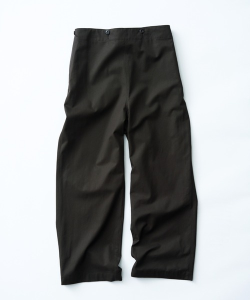 【 benine9 2024SPRING SUMMER 期間限定受注会 】 24SS COLLECTION theme_French Military 10月23日(月)10:30までの期間限定受注となります。 ※受注数に限りがございますのであらかじめご了承ください。 フィンクスコットンフレンチネイビーデッキパンツ 1950年代のフランス海軍デッキパンツからインスピレーションを受けてデザイン。 ウェストにスピンドルを通し、日常着として着用出来るようにアレンジ。モダンなワイドシルエットで提案。 手塩にかけて、大切に育てられ収穫された高品質のコットン・エジプト綿。 その中から、さらにトップクラスのものだけを選び抜いて輸入したのがフィンクス綿です。世界の綿花のわずか0.3%に満たないエジプト綿の中でも、フィンクス 綿として選ばれるのは0.01%にもならない希少価値の高い素材となってます。 最高級な素材にシルケット加工し、高密度のギャバジンで仕立て、さらにワッシャーをプラス、上質で上品さが際立つ素材となっています。 デッキパンツの特徴であるフロントボタンは、素材にマッチしたつやのある 本水牛ボタンを配し、細部に至るまでこだわったアイテムとなってます。 【BENINE(ビナイン)】 日本語の漢字で、うつくしさ、立派である、見た目にすばらしい、形がよい、、などを意味する美 (ビ) という言葉とその画数である 9 (ナイン) の組み合わせ。 「カルチャーとサブカルチャーが融合したベーシックで美しい服」をコンセプトに、さまざまな伝統、ディテール、テイスト、素材を融合したデザインを提案。 ■商品お気に入り登録 再入荷、残り1点、セールなどの通知を受け取ることが出来ます。 ■ブランドお気に入り登録 新商品や再入荷、ショップのおすすめトピックスなど、いち早くブランドのお得な情報を受け取ることができます。