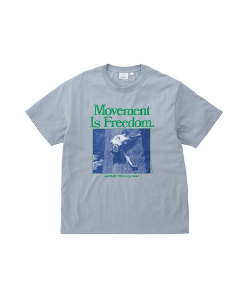 肌触りがよく、ドライタッチなオーガニックコットン使用の、80年代クライマーフォトと共に、当時から変わらないコンセプト 「Movement Is Freedom」 がプリントされたTシャツです。WHITEに加え、シーズナルのSLATE、ヴィンテージライクな色合いのNAVY PIGMENTでの展開です。