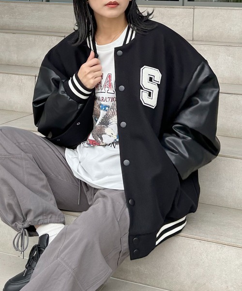 2023 AW 秋冬アイテム トラッドなスタジャンは秋冬ストリートコーデのマストアイテム これからの季節に活躍する羽織るだけでカジュアルコーデがきまるレトロなスタジャン。 異素材使いが新鮮なデザインで存在感のある1枚。 トレンドライクなオーバーサイズのシルエットでナチュラルに着こなせます。 胸元のワッペンがアクセントになり、間延びしないデザインに。 デニムやワイドパンツを合わせてメンズライクに着こなすのはもちろん、 ミニボトムで韓国風に合わせるのもおすすめです。 目を惹くツートンカラーから、クラシカルなワントーンまでラインナップ。 スナップボタンで開閉も楽チン。フロントサイドには便利なポケットが付いています。・ポケットあり【以下アカ/アイボリー参考。カラーにより多少の誤差あり】・透け感:透けない・伸縮性:なし・生地の厚さ:普通・裏地:あり ▼Recommend ・スタジャン ・ワッペン付 ・アウター ・羽織 ・アメカジ ・ストリート ・大人カジュアル ・韓国ファッション