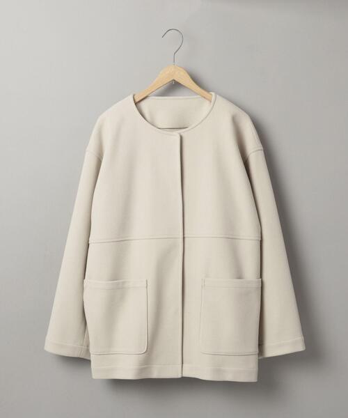 バサッと羽織るだけで今年顔に決まる ■デザイン パンツ合わせはもちろん、スカートとも合わせやすいハーフ丈のノーカラーコート。 昨年もご好評だったアウターのシルエットをアップデートしました。 女性らしい雰囲気を保ちつつ、オーバーサイズ気味のサイジングや丈感に拘り、サイドスリットで抜けを出した着映えする一着です。 ■素材 軽くて伸びもあるウールライクなジャージー素材を使っていますので、気軽に取り入れて頂けます。 ■スタイリング ブルゾン感覚でさらっと羽織れるデザインで、パンツにもスカートにも合わせ易いデイリーユースなアイテム。 マーメイドシルエットやIラインのスカート×ブーツが今年らしいバランスでおすすめです。 すっきりとしたネックラインは、タートルネックのトップス合わせやストール巻きもきまります。 透け感:なし 生地の厚さ:普通 光沢感:なし 裏地:なし サイドポケット:あり 家庭洗濯:不可 【注意点】 ※撮影商品はサンプルの為、実際の仕様と異なる場合がございます。 ※画像の商品は光の照射や角度、お使いのモニター環境により、実物と色味が異なる場合がございます。スタジオ物撮りの画像が実物の色味に一番近くなっております。 ※予約商品の場合、お届け予定はあくまでも目安となります。 生産の都合上、お届け時期が前後したり実店舗入荷時期とずれる場合がございますので、あらかじめご了承ください。 品名:ライトエアーメルトン ノーカラーミドル 品番:7660-636-0157