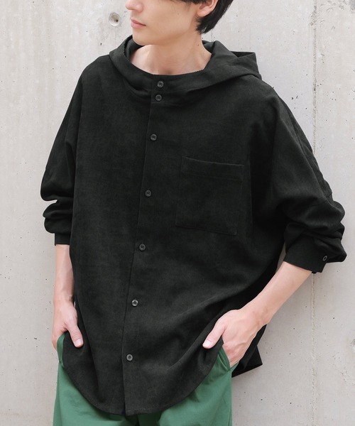 1枚2役で着回し力抜群。 トップスとしても羽織としても活躍する、カジュアルなコーデュロイシャツ。ラフに着られるゆるっとしたサイズ感に、裾のカーブラインで抜け感をプラス。 スタンドネックで首元にアクセントを効かせました。 のっぺり見えないよう、左胸にはパッチポケット付き。 柔らかく滑らかな肌触りで、凹凸感が魅力的なコーデュロイ生地。 ユニセックスで着られるシンプルなデザインで、大切な人とシェアもできる優秀アイテムです。 ≪n'OrLABEL≫コーデュロイフーディーシャツです。