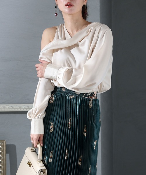 ニュアンスで差が付くデザインブラウスです。片方がオフショルダー且つワンショルダーデザインのデザインになっている他にはないファッショナブルな1着。