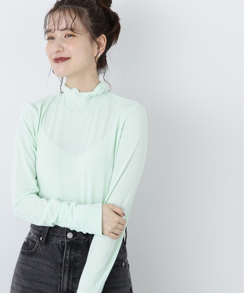 カジュアルながらレディライクな要素もプラスした、ボタンカフススリーブカットソー【稲垣莉生さん着用】襟の上部にメロー加工を入れた、フェミニン顔なハイネックカットソー。キャミワンピースやジャンパースカートのインにレイヤードもできるデザインです。袖に長さを出したスリーブは、カフスにボタンをあしらいポイントに。ニットカーディガンやスウェットトップスなどの袖口から、少しカフスをのぞかせることも可能。一枚もっていると重ね着スタイルに活躍できます。【スタッフ着用コメント】身長:158cm/体型:普通/普段サイズ:M/着用サイズ:M伸縮性があり、ぴったりとしたサイズ感です。袖のボタンカフスが他にはない一着で、アウターの袖から出すとより可愛いです!ベーシックカラーもおすすめですが、差し色で使えるミントがお気に入りです◎**********************透け感:ややあり生地の厚さ:薄手裏地:なし伸縮性:ややあり光沢:なしシルエット:スタンダード**********************【洗濯表示】液温は40 ℃を限度とし、洗濯機で非常に弱い処理が出来ます。酸素系漂白剤の使用はできるが塩素系漂白剤は使用禁止です。タンブル乾燥禁止です。日陰のつり干しがよいです。底面温度110 ℃を限度としてスチームなしでアイロン仕上げができます。ドライクリーニング禁止です。非常に弱い操作のウエットクリーニングができます。色物(特に濃色)と白物・淡色物は分けて洗ってください。ネットを使用してください。蛍光増白剤が入っていない洗剤を使用して下さい。あて布を使用してください。引っかけに、ご注意下さい。摩擦により、素材表面が白っぽくなったり、毛羽立ちが発生したりします。【お気に入り登録】★商品のお気に入り登録再入荷・残り1点・セールの通知を受け取ることができます。★ブランドのお気に入り登録新商品・再入荷・ショップのおすすめトピックスなどブランドの情報を受け取ることができます。