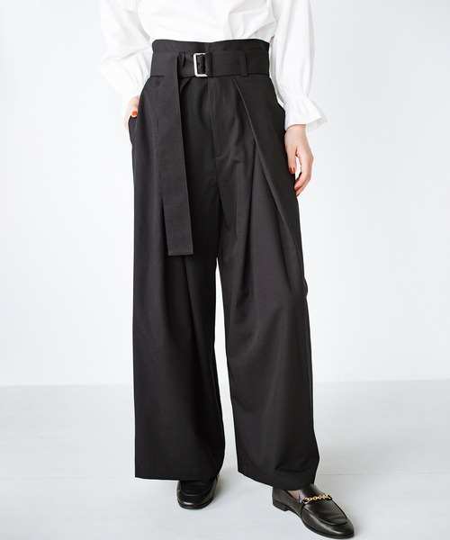 ここぞ!という日は、わりと多くあるもので 大事な商談、準備に余念がないデート、予約して楽しみにしていた観劇などなど。ここぞ!という日はわりと多くあるものです。そんなときにぴったりな、腹をくくって気合いを入れる意気込みで、ウエストをきゅっと締めて、気持ちも見た目もキリッと決まるパンツを作りました! サイズ感 普段フリーサイズをお選びの方は、MサイズかLサイズがおすすめです。 背筋もスッと伸びるようなハイウエストデザイン 着るたびキュッと気持ちも引き締まるように、ウエストベルトデザインに。 コーディネートのかっこいいアクセントになるように、ベルトを太めに設定しました。 ハイウエストですっきりと。腰を支えてくれそうな太めのベルトで、座り姿勢も美しく見せてくれます◎ きちんとも華やかも叶えるフロントタック お仕事にも行けるくらいのきちんと感はありながら、華やかに気分が上がることも大事にしたい。 そんな気持ちで、センタープレスではなくタックを入れました。重なるようなタックが、上品さも引き出してくれます。 腰まわりが華奢に見えるように、ウエストのところは深くタックを。だんだんとすそに向かって開くように、分量も角度も調整しています。 タックにしていることで、もう一つ嬉しいのが後ろがすっきりすること! ヒップに余計なボリュームが出ず、すらりとしたシルエットになるんです♪ 後ろ姿にも、自信がもてそうです。 大事な予定に集中できる楽ちんゴム仕様 気合いは入れつつ、窮屈だと身が入らない…。そうならないように気軽に着られるポイントを散りばめました! ウエストの後ろはゴム仕様に。 ベルトは穴がないものを選びました。自分にちょうどいいフィット感で着られて、着脱もしやすいんです♡ 洗濯機で洗える気軽な素材 頑張った1日こそ、服を脱ぐときの、ふぅっと一息つく瞬間もなんだか心地いいですよね。 そのままポイっと、洗濯機で洗えるように素材を厳選! 1枚で透けず、オールシーズン使える素材です。 実は、haco!で人気のジャンパースカートと同じ素材。 比較的シワにもなりにくく、ほんのり伸びる心地よさが自慢です。 ※洗濯機洗い可 ※裏地なし ※ポケットあり(後ろポケットはダミー) ※後ろウエストゴム仕様 ※フロントファスナー開き仕様 ※共布ベルト付き #ワイドパンツ #黒 #オフィス #大きいサイズ #Sサイズ ========== haco! とは =========== ファッションアイテムを軸に、毎日の生活がちょっと楽しくなるようなお洋服をお届けしています。 毎日が、そして明日が、昨日よりちょっとびっくりできる、 そんなお洋服や雑貨、プロジェクトがたっぷりつまったツーハンサイトです。 ===========================