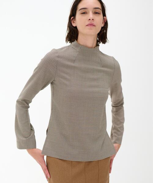 【手洗い可能】スタンドカラーチェックブラウス ◇デザイン 衿元ダーツと切り替えのデザインがポイントのミニマルな印象のブラウス。 ストレッチが効いた素材を使用していることで自然なフィット感が生まれ、着るだけで美ラインに。 袖はヒジ下から広がるさりげないベルスリーブで、甘すぎずモードなシルエットに。 サイドスリット入りでタックインもしやすく、ボトムとのバランスもとりやすい。 異なるチェック柄でのカラー展開で、スタイリングのアクセントとしても映えるアイテムです。 ◇ファブリック 使用している生地はナチュラルな2wayストレッチが効き、上品な光沢としなやかな質感が特徴。 ポリエステル/ウールのため、暖かみがありながら、イージーケアが可能な素材です。 ------------------------------ 裏地:なし 光沢感:なし 伸縮性:ややあり 生地の厚さ:普通 透け感:なし 重さ:普通 ポケット:なし 洗濯:手洗い可能 ※洗濯表示の詳細は商品をご確認ください。 ------------------------------ ◇コーディネート 裾にスリットが入っているのでスカート、パンツどちらにあわせてもバランス◎ ハイウエストのパンツ合わせも、インしたときにトップスがもたつきにくいので、ハイウエストのパンツ合わせもおすすめです。 ◆商品画像はサンプルのため、デザイン、素材(混率等)、色味やサイズなどの仕様に変更がある場合がございますので予めご了承くださいませ。 ※定価(税込)は、2024年1月1日のセール開始前の店舗における販売価格です。 38:肩幅35、バスト86、袖丈61、ゆき丈-、着丈-、身丈62