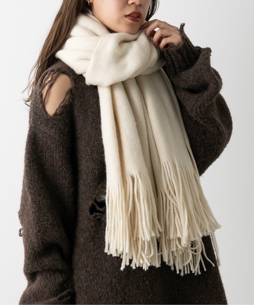 【もっちりふんわりとしたボリューム感のフリンジストール】ふんわりと柔らかな肌触りが特徴のラッセルストール。細かいフリンジがデザインのアクセントになっています。幅が広いので、アウターとして羽織るように着用したり、座る際のひざ掛けにしたりと、寒いシーズンには幅広く活躍するアイテムです。ラッセル編みは伸縮性あるので、ふんわりとしたボリューム感をお楽しみいただけます。【商品ポイント】・使い回しやすいシンプルなストール・マフラーとして使うのもおすすめ・もっちり柔らかい肌触り・ユニセックスアイテム----------------------------------------------------■素材本体: アクリル100%----------------------------------------------------※着用、お取り扱いの際は、商品についている品質表示とアテンションタグを必ずご確認下さい。※商品タグに記載されている商品名がWEBでの表記名と異なる場合があります。※画像の商品はサンプルです。実際の商品と仕様、加工、サイズが若干異なる場合がございます。 ※照明の関係により、実際よりもやや明るく見える場合がございます。またパソコンなどの環境により、若干製品と画像のカラーが異なる場合もございます。予めご了承くださいませ。 【お気に入り登録】してお得な情報をCHECK!!・「商品のお気に入り登録」で再入荷通知や、ラストの通知、セール通知も受け取ることができます。・「ブランドのお気に入り登録」で新商品や再入荷など、お得な情報を受け取ることができます。