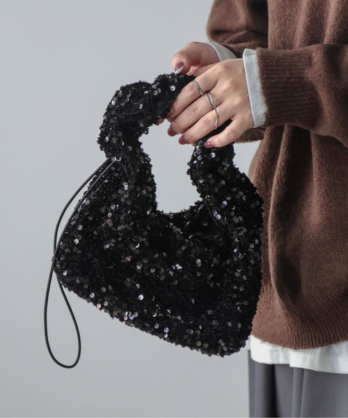 普段のコーデにリッチなアクセント きらめくスパンコールハンドバッグ 存在感のあるキラキラスパンコールが目を惹くアイテム。 取り入れるだけでこなれ感のあるスタイリングに仕上がります◎ 底板入りでかわいいフォルムをしっかりとキープ。 内側にはファスナーポケット、パッチポケットがあり小物整理も叶います♪ Point01 スクエアフォルム ちょっとしたお出かけに十分な収納力とサイズ感。 マグネット開閉式で、わずらわしさの無い デザインに仕上げました♪ Point02 ドローコード ハンドル部分のドローコードを引っ張って、 くしゅっとギャザーを寄せると雰囲気を 変えてデザインを楽しめます◎ ■Fabric 起毛感のあるマットな生地に、スパンコールを施した生地 --------------------- 透け感:なし 裏地:あり 厚さ:普通 伸縮性:なし --------------------- ▼《お気に入り登録》でお得な情報がいっぱい▼ ・「商品のお気に入り登録」で再入荷通知や、ラストの通知、セール通知も受け取ることができます。 ・「ブランドのお気に入り登録」で新商品や再入荷など、お得な情報を受け取ることができます!