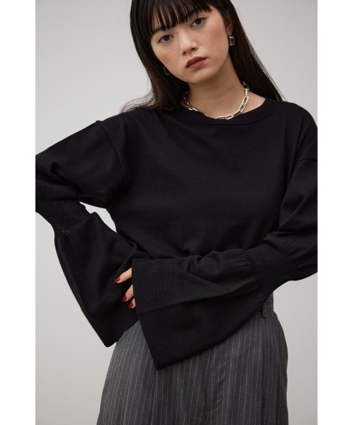 ・肌離れの良い落ち感のある糸を使用し、天竺編みにしています。・袖口の大ぶりなキャンディスリーブが甘く、華やかな雰囲気にしてくれるニットです。・コンパクトなサイズ感で着ぶくれせず、ボリュームのある袖とのバランスが取れたアイテムです。・ボトムスを選ばないデザインなので、いろんなスタイルで着こなしていただけます。・袖のリブパーツは透け感を出す為に少し固い糸を使用しています。・ご家庭で手洗い可能です。▼商品のお気に入り登録お気に入りアイテムの値下げ・再入荷・在庫1点などの通知を受け取ることができます。▼ブランドのお気に入り登録新商品や再入荷、セール、クーポン配布などお得な情報を受け取ることができます。