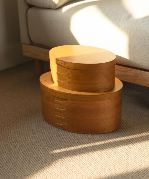 このアイテムはWEB限定商品です。 シンプルでナチュラル。手仕事が感じられ、インテリアとしても映えるオーバル型のシェーカーボックス。 美しい木目と曲線、手作業ならではのぬくもりが感じられるおしゃれな収納ボックスがオンライン限定で入荷しました。 シェーカーボックスとは・・・ 19世紀にキリスト教プロテスタント宗派のシェーカー教徒たちが作っていた木製品のひとつ。 薄い木材を曲げて作られる、シンプルなオーバル型の木箱のこと。 "AXCIS"のシェーカーボックスは、オリジナルのシェーカーボックスのシンプルな美しさはそのままに、現代日本でも使いやすいサイズや機能性にこだわって手作業で作られています。 カウンターやシェルフなど家具の上といった、ちょっとしたスペースにも置くことができ、収納力があるのに省スペースな点が嬉しいポイントに。 日常の細々とした身の周り品や薬などをしまって、飾りながら収納できるアイテムです。 こちらのブラウンは素朴ながら端正な木肌のチェリー材を使用。 長く使っていくうちにこっくりとした色合いに変わっていく経年変化も楽しんでいただけます。 【AXCIS(アクシス)】 ひと手間と、その先。 照明・灯具・スイッチ・ハウスパーツ・雑貨・家具などの企画・製造・販売を行う、岡山市にあるインテリアメーカー。 ※この商品は全て天然の木材を使用して手作りで制作をしておりますため、木目の出方や色合い、仕上げ等に若干の個体差がある可能性がございます。予めご了承下さい。 ※商品画像は、光の当たり具合やパソコンなどの閲覧環境により、実際の色味と異なって見える場合がございます。予めご了承ください。 ※商品の色味の目安は、商品単体の画像をご参照ください。 ▼お気に入り登録のおすすめ▼ お気に入り登録商品は、マイページにて現在の価格情報や在庫状況の確認が可能です。 お買い物リストの管理に是非ご利用下さい。 L
