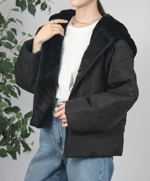 トレンドムードたっぷりアウター ■design・point 中綿キルティング×ファー素材を使用したブルゾン ・ひょうたんキルトがトレンドライク。 ・とろふわファーを使用したフードで防寒対策バッチリ。 ・袖口にかけて緩やかに細くなる袖がスッキリとシャープな印象に。 ・ショート丈でスタイルアップ効果。 ・ゆったりとボリューミーな着心地で大人可愛い1着です。 ■detail ・大きめのフードで小顔効果。 ・フロントジップで着脱楽々。 ・実用的な箱ポケット付き。 ・裏地付きでポカポカした着心地。 ・軽くて、着やすい滑らかな素材感。 ■fabric 異なる2種類の素材 【キルティング】 中綿入りのキルティング素材でとても軽く、 防寒性保温性に優れています。 【エコファー】 肌触りが気持ちいいふわふわのフェイクファーで、 存在感がありながらも上品な印象に。 ■coordinate ・ボトムスは広がりの少ないアイテムを組み合わせるとスッキリ見えします。 ・ロンTやプルオーバーでカジュアルスタイル、タートルニットやメロートップスできれいめコーデなどなど様々なトップスと好相性。 ・ジャンスカやワンピースの上から羽織ってフェミニンスタイルもオススメです。 ※ご覧いただいている環境によっては、実際のカラーと異なって見える場合がございます。あらかじめご了承くださいませ。 ---------- ■■■もっとお得にお楽しみいただくために■■■ 【商品のお気に入り登録】 再入荷通知や、ラストの通知、セール通知も受け取ることができます。 【ブランドのお気に入り登録】 新商品や再入荷など、お得な情報を受け取ることができます! ※他のキャンペーンにより、期間中に価格が変動する場合があります。 ※セールは予告なく終了させていただく場合もあります。 ----------