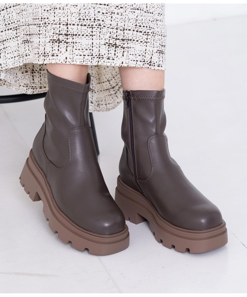 存在感バツグンの厚底ストレッチブーツ。 ●程よくボリューミーなソールがカジュアルながら、モードな雰囲気に。 ●足首周りはストレッチが効いているので女性らしいシルエットに仕上がります。 ●ワントーンカラーなので、コーデに取り入れやすいのも嬉しいポイント。 ●ミニ丈のボトムと相性抜群なトレンド感たっぷりのアイテムです! <サイズ> ・S(22.5cm~23.0cm) 甲幅:13cm 底幅:10cm 足首周り:30cm 履き口:22cm 筒丈:15.5cm(ソール/ヒールの高さは除く) ・M(23.0cm~23.5cm) 甲幅:14cm 底幅:10cm 足首周り:31cm 履き口:23cm 筒丈:16cm(ソール/ヒールの高さは除く) ・L(23.5cm~24.0cm) 甲幅:14.5cm 底幅:10.5cm 足首周り:31cm 履き口:24cm 筒丈:16.5cm(ソール/ヒールの高さは除く) ・LL(24.0cm~24.5cm) 甲幅:15cm 底幅:10.5cm 足首周り:31.5cm 履き口:12.5cm 筒丈:17cm(ソール/ヒールの高さは除く) ソール:4cm ヒール:7cm ※密着させておきますと移染しますのでお取り扱いにはお気を付けください。 ※モデル着用画像は光の当たり具合で色味が違って見える場合がございます。 ※商品の色味の目安は、商品単体の画像をご参照ください。 【お買いものをお楽しみいただく為に!】 ▼商品のお気に入り登録 完売カラーの再入荷通知や、ラスト1点の通知、セールの通知も受け取ることができます。 ▼ブランドのお気に入り登録 新商品や再入荷など、いち早くブランドのお得な情報を受け取ることができます。