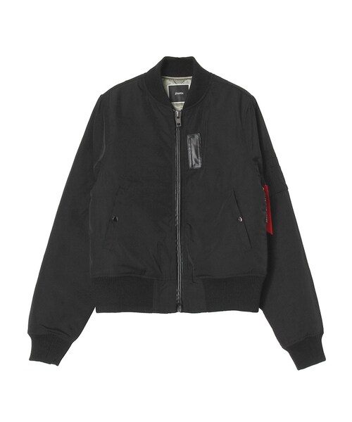 中綿入りのMA-1。今から春まで使える調度良い素材感です。デコレーション部分をレザー調パイピングにしたことでクールな印象に。大人なミディ丈スカートのスタイリングやスキニーのモード系スタイリングにも合わせやすい一着です。