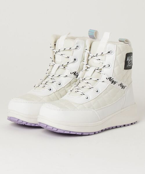 トレンドに敏感な女の子の足元を可愛く彩るガーリーカジュアルブランド「ALGY」のブーツ☆足首までしっかり暖かいショート丈。キルティング素材とボリュームがあるように見える存在感がポイント♪前から、横から、後ろから、どこから見ても可愛いのが特徴的。
