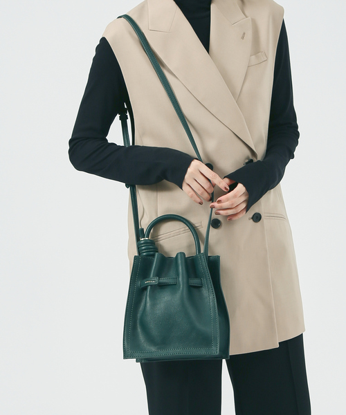 【新色カラー】SwellミニショルダーBAG登場 【Design】Swellは英語で膨らむ・うねるの意味。 3つ口仕様で口元の柔らかいシルエットに太番手ステッチ・TUBEハンドルのディティールや、ハンドルに付いたリングがアクセントとなったデザインBAG。 【Detail】 BELTで好みのシルエットに調整可。 ミニバッグなサイズながら、マチがあり最小限の必需品を入れらるのが魅力的◎ 【pocket】 外側:0 内側 背胴:オープンポケット×1