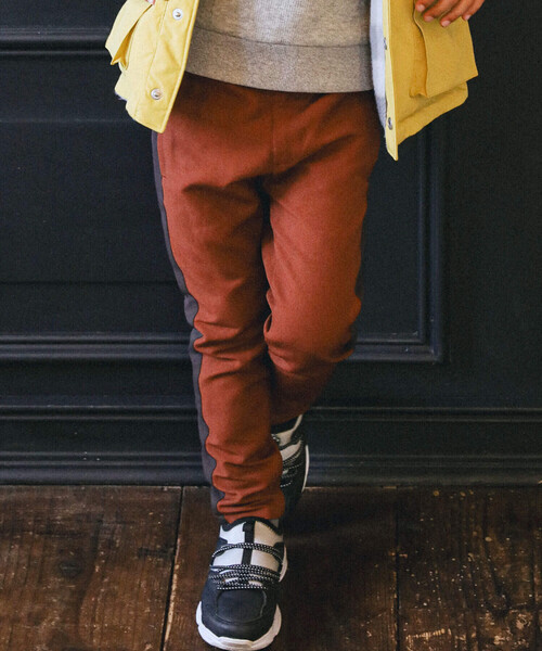 伸びの良いツイル素材を使用した男の子用ロングパンツ。 深みのあるグリーンとキャメルの2色展開で、サイドの配色ラインがかっこいい1着です。 細身のストレートシルエットで、合わせるトップスを選ばない着回し力が魅力。 お子様にうれしい動きやすさとウエストゴムでの脱ぎ着のしやすさもうれしいポイントです。 後ろポケットにはトリケラトプスのシルエットがおしゃれなネーム付きです。 ※両脇・後ろポケット付きです。 ※ウエストゴム仕様 【10月 BOYシーズンテーマ】 古生物学者 -Paleontologiste- パリにある世界屈指と言われる恐竜博物館。 その博物館で働く古生物学者をイメージ。 化石を発掘して研究するアクティブなイメージからワークテイストをMIXしたスタイリングで提案します。 イエロー・キャメル・ブラウンを中心に、グリーンを差したカラーリングで展開。 【2023 AW Collection】 Je veux devenir... -ジュ・ヴ・ドゥヴニール(わたしのなりたいもの)- お気に入りの服を着ると、なりたい自分になれる。 上質でクラシカルなトラッドスタイルを自由な着こなしでアップデート。 私らしく進化した新しいスタンダード。 好きなものをいっぱい詰め込んで、“なりたい”をかなえるファッションを提案します。 【BeBe(べべ)】 "LOVE MODERN" 少しおませで、生意気なヨーロピアンカジュアルの提案。 時代性・流行性をとらえ、ベーシックでもワンポイントを施した遊び心、楽しさを盛り込んでいます。 シンプルだけど、こだわりのあるオリジナリティーを重視しています。