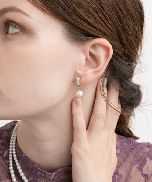 ***結婚式・二次会・謝恩会・成人式・パーティー等のフォーマルシーンにオススメ*** ・華やかなビジューリングから艶やかなパールが垂れ下がる魅力的なデザイン・ミニマルなサイズ感で、お顔まわりを上品で華やかな印象に仕上げてくれる ・イヤリング金具がネジバネ式で、安定感のある付け心地シリコンキャッチ ・シリコンカバー付き
