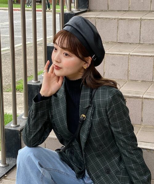 ステッチがピントのエコレザーベレー帽✨ ウールライクな素材とはまた別で コーデを締めてくれます! 後のアジャスターでサイズ調節もできちゃいます♡