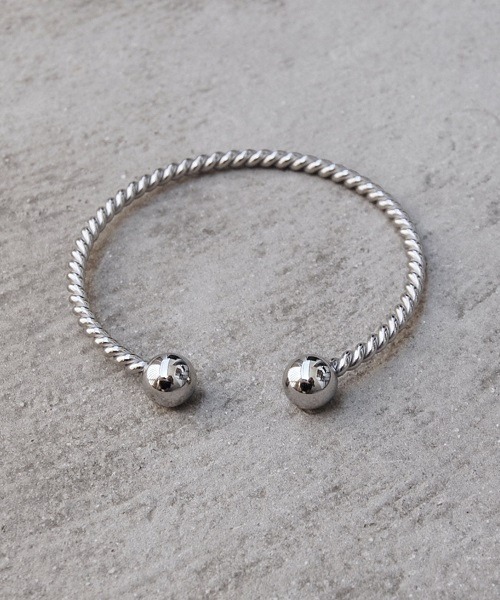 ダブルボールツイストバングル。存在感のあるルックスで、スタイリングにさりげないアクセントをプラスします。様々なコーディネートに合わせやすく、幅広く活躍してくれるのもポイント◎デイリーユースはもちろん、お出かけシーンにもぴったりです。- 316Lについて- サージカルステンレス素材とは、サージカル=医療用の、ステンレススティール=錆びない鋼鉄、という2つの言葉を合わせて作られた造語です。その中でもアクセサリーに使われているのが「316L」と呼ばれる腐食しにくい素材で、医療用のメスなどの医療用器具や、ハサミなどにも使われています。変色しにくい上に、お風呂、温泉、プール、海など水に強く錆びにくいのが特徴。金属アレルギーの方でもご使用いただけるのが最大のメリットです。素材サージカルステンレス 316Lサイズ内周:約17cm厚み:3mm品番 KACSB2
