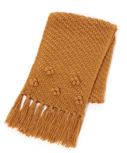 ーーーお花のような毛糸のぽんぽんがかわいいニットマフラー。網目がぽこぽこと立体感があり、冬のコーデのアクセントに♪クラフト感のあるナチュラルなデザインなので、幅広いコーデに合わせやすく、くるっと巻くだけで首元をしっかりと暖めてくれます◎ちょっとしたギフトにもおすすめのアイテム。ーーー