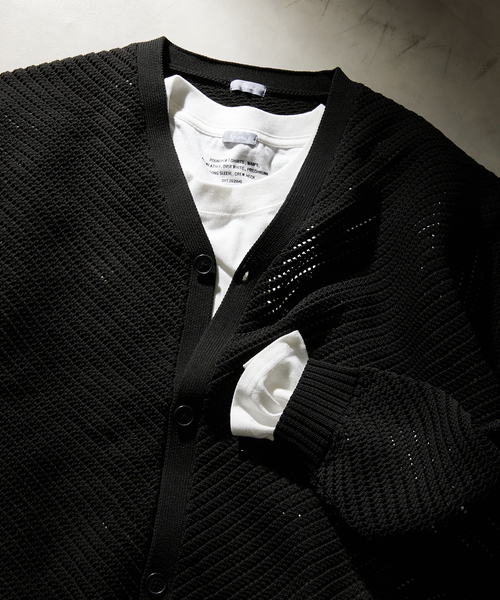 大人気の”洗えるニット&カットソー”シリーズに今回も新型カーディガンが登場!今回はベーシックカラーを中心とした5色展開のカラーバリエーションをご用意しました。定番のブラック、グレーはもちろんの事、トレンドのニュアンスカラーを揃えました。デザインは人気のデザインをそのままにバイアス(斜め)メッシュ編みにし、表面に凹凸のある表情豊かなデザインです。丸みの帯びたリラックス感のあるビッグシルエットは、男性でも女性でもユニセックスで着用できるデザインとなっております。素材感はエシカルな原料であるリサイクルポリエステルを100%使用。程よい膨らみがありつつ、ドライな質感です。インナーで着用するカットソーには綿100%を使用しているので耐久性、吸収力に優れ他のアイテムと組み合わせてレイヤードしても◎デザイン的にも、素材感的にも、かなり細部にこだわったアイテムになっています。**********************裏地:なし伸縮性:なし光沢感:なし生地の厚さ:普通**********************【スタッフ着用コメント】《スタッフY》身長:172cm/体重:62kg/体型:中肉中背/普段サイズ:M/着用サイズ:Lサイズ感:ややゆったりとしたオーバーなサイズ感です素材感:表面に凹凸感が特徴の素材感です着心地:軽くて肌当たりも良いストレスのない着心地です**********************《画像についてのご注意》※照明の関係により、実際よりも色味が違って見える場合があります。またパソコン・スマートフォンなどの環境により、若干製品と画像のカラーが異なる場合もございます。※商品の色味は、商品アップ画像をご参照ください。《商品のお気に入り登録について》「カートに入れる」または「予約する」右側のハートマークを押していただくと、再入荷、残り1点、セールなどの通知を受け取ることが出来ます。《ブランドお気に入り登録について》JOURNAL STANDARD relumeのトップページ右上にある「お気に入りブランドに追加」を押していただくと、新商品や再入荷、ショップのおすすめトピックスなど、いち早くブランドの情報を受け取ることが出来ます。モデルサイズ:身長:179cm 着用サイズ:L本体:手洗い可能, インナー:手洗い可能
