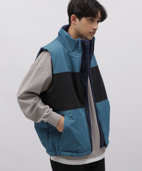 表裏でがらりと表情の変わる、リバーシブルベスト。表面はアウトドアライクな切り替え、裏面はコーデを選ばない無地デザインの1枚です。【素材】スポーティでハリ感のある表面と、カジュアルで暖かいフリースの裏面をリバーシブル仕様に。【スタイリング】カジュアルな着こなしと相性〇