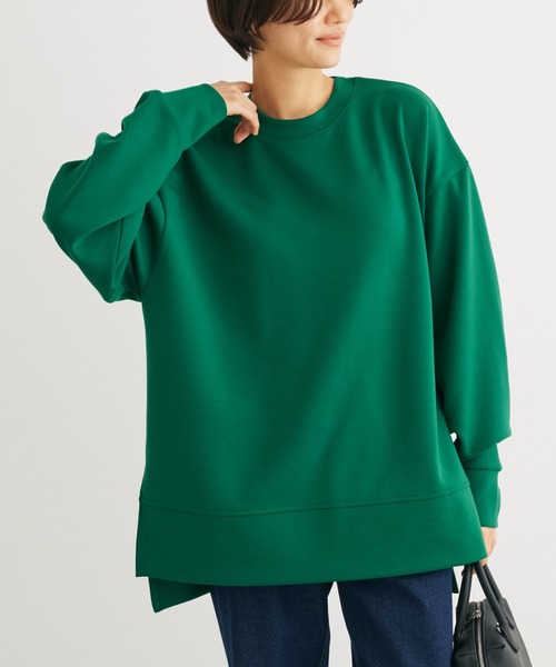 ハリ感のあるダンボール生地が暖かい着心地を演出するチュニック。裾の長さは前後で異なるので、スタイリングに動きのある印象を与えます。シンプルなルックスで着まわしやすく、コーデの幅が広がるアイテム。季節の変わり目のお出かけシーンに大活躍してくれます。透け感[無し] 裏地[無し] 伸縮性[有り] 光沢感[無し] 生地の厚さ[普通] 付属品[無し] ポケット[無し]●製品寸法:F:バスト62.5cm 着丈前70/後76cm 袖丈56cm 肩幅59cm 裾幅62.5cm備考: