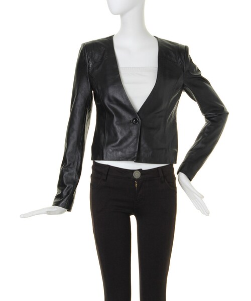 薄手で柔らかいラムレザーを使用しています。無駄なデザインをそぎ落とした、スッキリとコンパクトなシルエットです。肩パットが入っているのでカッチリとした綺麗なラインが出ます。コンパクトなサイズ感なので、どんなBOTTOMとも相性が良く、ワンピースにも合わせやすいです。