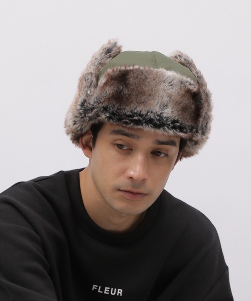 ボリュームのあるファーがポイントの、フライトキャップ。耳部分はスナップボタンでとめられます。垂らすと耳をすっぽり覆ってくれるので、冬場でもあたたかく着用いただけます。ボディにも中綿を入れており、ボリューム感があるデザイン。