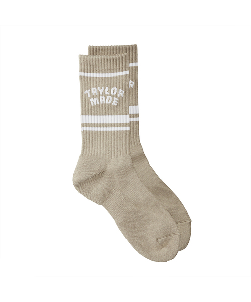 アパレルで使用しているアーチロゴを用いたミドルソックス。カジュアルな見た目でデイリーユースにも着用しやすいデザイン。 特徴:22-24cm