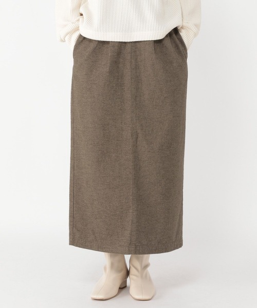 ーーーこの秋注目のあたたかみのあるツイード調スカート。コットン素材を使用し、ウールライクで暖かなツイード調を表現しました。身体のラインを拾わず気になる部分を隠し、縦のラインがきれいなストレートシルエットに◎フロント部分はタック仕様なので、お腹周りをすっきり見せてくれます♪コットン素材でお作りしているため、ご自宅の洗濯機で洗えるのも嬉しいポイント◎秋らしい無地見えのツイード柄は、落ち着いていてどんな着こなしにも馴染む万能アイテムです。ーーー