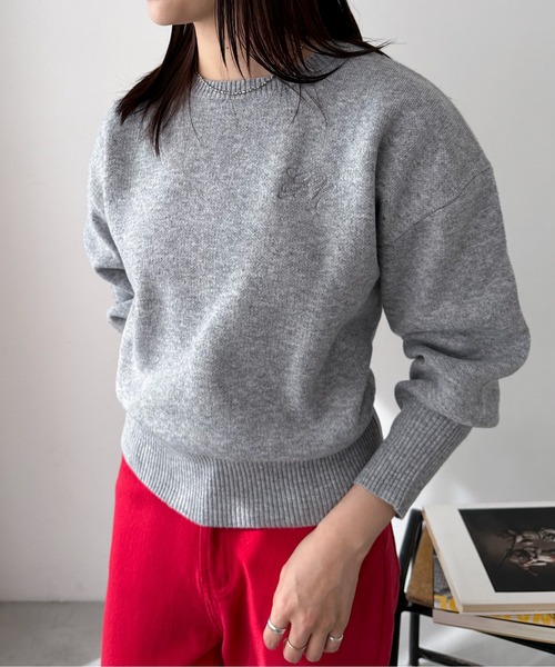 スウェットのようなカジュアル感のあるニット しっかり厚みのあるニットなので、これからのシーズンにも活躍する素材。 ボディのカラーにより異なるトレンドの刺繍ロゴがポイント。 アームホールにゆとりを持たせたドロップショルダーにリブ付きのショート丈はウエスト周りをスッキリ見せてくれるでシルエットです。 COORDINATE ショート丈にリブ仕様の裾がコーデにメリハリを出してくれるので、フレアスカートやワイドパンツなどのゆったりめのボトムや、インスタイルにもオススメ。 中綿ベストとレイヤードしてストリートライクなコーデにも、トレンドのチュールスカートと合わせてフェミニンなスタイルにも◎ DETAIL トレンド:★★★☆☆ スタイルアップ:★★★★☆ 厚み:★★★☆☆ 着回し:★★★★★ SEASON 秋・冬・春 ※照明や天候、閲覧環境によって実際の色味と異なって見える場合がございます。予めご了承ください。 ◆Information 欲しいitemをお気に入り登録(♡マークをclick) ・お買いのがし対策…完売itemの再入荷やラスト1点の情報をお知らせ ・欲しいitemをお得にget…pricedownになったらいち早くお知らせ ・スムーズ検索…ZOZOのお気に入りアイテムページで簡単checkできるから、再検索不要♪