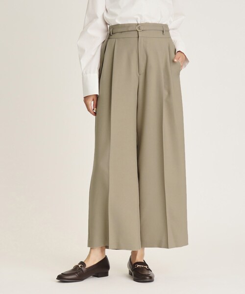 【My style is...掲載】機能性に富んだウール調ファブリック『LANATEC LEI(R)/ラナテック レイ』を使用したベルト付きワイドパンツ【デザイン】・今季トレンドでもある2タックデザインのワイドパンツ。・センタープレス入りで、きれいな仕上がりとワイドならがもすっきりしたシルエットが魅力。・共地の細ベルトを付属で付け、マニッシュでデザインのポイントにしています。・ベルト付きの場合は、トップスをインしてすっきりした着こなしに。ベルトなしでは、トップスをアウトして抜け感のある着こなしも可能です。※共地ベルト付き※前ポケット×2 後ろポケット×2(飾り)※同素材でジャンパースカート(637-57319)もお作りしています。【素材】・イージーケア性に富み、ピリングもしにくい機能性の高いウール調ファブリック「LANATEC LEI(R)/ラナテック レイ」シリーズ。・杢調のメランジ感と綾織の表面感が特徴で、膨らみ持ちながらウールの様なルックスの素材です。・やや肉感もありながらも軽さと柔らかさのある素材です。・シワになりにくくお手入れも簡単。・ナチュラルストレッチで着心地も快適。・マシンウオッシャブルでご自宅でのお洗濯も可能。※裏地なしこちらの商品は主に冬に着用いただける商品です。モデル情報:身長166cm B72 W57 H84 着用サイズ:38(M)店舗へのお問い合わせ商品番号:637-67037●製品寸法:36(S):W62~68cm H96cm 股下65cm 前股上33cm 渡り幅33cm 裾幅28cm 付属ベルト全長115cm 付属ベルト幅1.5cm38(M):W65~71cm H98cm 股下66cm 前股上33cm 渡り幅34cm 裾幅28cm 付属ベルト全長118cm 付属ベルト幅1.5cm40(L):W68~74cm H101cm 股下67cm 前股上34cm 渡り幅35cm 裾幅29cm 付属ベルト全長122cm 付属ベルト幅1.5cm42(LL):W72~78cm H104cm 股下68cm 前股上34cm 渡り幅36cm 裾幅30cm 付属ベルト全長126cm 付属ベルト幅1.5cm備考: