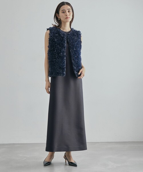 【素材】 シルクの持つ光沢さと発色性の良さ、ウールのウォーム感を併せ持ったラグジュアリーな素材。程よい肉感と張りがあるので美しいシルエットを表現できるのが特徴です。天然素材の優しい風合いが着るだけでリッチな高揚感に包まれます。 【デザイン・シルエット】 素材の特徴を最大限に活かし、ディテールは極限まで減らして長めにとったダーツや美しいシルエットで魅せるマキシワンピース。 着るとほんのりコクーンシルエットになり他にはない存在感があります。 同シリーズで膝丈のエレガンスウールシルクワンピース(品番:GGE43030)もございます。 【カラー】 ネイビー1色展開 【おすすめのスタイリング】 1枚でさらっと着ていただくのがおススメですが、同シリーズのブルゾンとセットアップにしたり、インナーにシャツやニットを合わせたりと、シンプルならではのさまざまな着こなしが楽しめます。 ---------------------------- 透け感:なし 裏地:あり 伸縮性:なし 光沢感:なし 生地の厚さ:中肉 ポケット:あり 開き方:後ろファスナー開き 洗濯方法:ドライクリーニング ---------------------------- 【モデル情報】 モデル身長:168cm 着用サイズ:F ※画像の商品はサンプルです。実際の商品と仕様、加工、サイズが異なる場合がございます。 ※撮影場所やライティング、お使いのモニター環境によって色の見え方が異なる場合がございます。 ※商品のカラーは画像の色味をご参照ください。動画は仕様説明のため、色味が実物と異なる場合がございます。