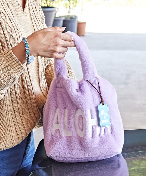 ふわふわなフェイクファーが可愛いバッグ。 『ALOHA』のロゴとパームツリーのタグがポイント。 秋冬らしいシーズンライクなスタイルを演出できるアイテムです。 ・内側の色味は全カラー外側の色味と同系色です。 Kahiko(カヒコ) ROOTS of HAWAI'I ハワイの華やかなリゾートカルチャーからその歴史的ルーツまで。 日本人が愛してやまないハワイの奥深い魅力をお届けします。 ※こちらの商品は1点1点職人による手作りとなります。その為、形や色合いなど若干異なる場合がございます。あらかじめご了承ください。 ※屋外での撮影画像は、光の当たり具合で色味・カラーが違って見える場合がございます。商品のカラーは、スタジオ撮影の画像をご参照ください。 Amina Collection Co.,LTD.