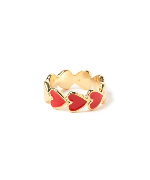 キュートな手元で気分を上げる ■デザイン 連なったハートが可愛らしいリング。ゴールドのハートに、一部にさりげなくカラーが入っており、甘すぎず上品な印象を与えます。ご自身用はもちろん、ご友人へのギフトとしてもおすすめです。 ■コーディネート お持ちのアクセサリーとの重ね付けも◎。 ■サイズ 約11.5号 ■素材 真鍮, エポキシ樹脂 【アクセサリー・小物雑貨の取り扱いについて】 ・貴金属は、体質により、かゆみやかぶれを生じる場合があります。 ・皮膚に異常を感じた場合は直ちにご使用を止め、専門医にご相談下さい。 ・家事やスポーツ、就寝時や乳幼児の世話をする時などは、身体に危害を及ぼす場合がありますので着用を避けて下さい。 ・熱伝導が高いので、高温の場所や寒冷地での着用は火傷や凍傷の原因となりますので着用を避けて下さい。 ・乳幼児が誤飲しないように、保管は十分にご注意下さい。