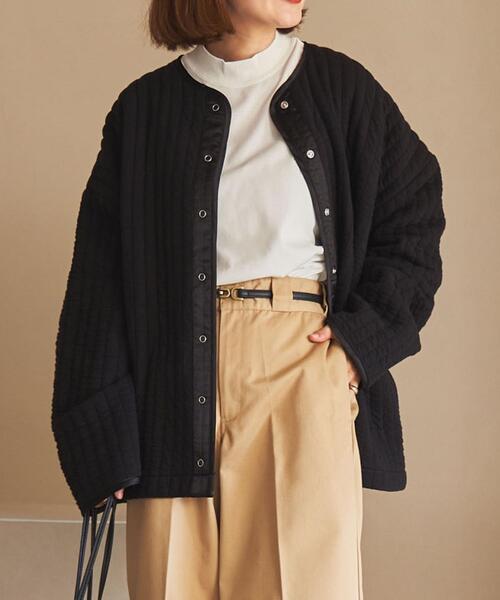 昨年好評だったアイテムを復刻! 存在感抜群のふっくらキルト風カーディガン ■デザイン ボディのキルト風生地に同色系異素材のパイピングをフロントの前立て部分まで施したデザイン。 その上にスナップボタンを付けてトレンド感のある仕上がりです。 素材感が特徴的ながら、小さすぎず大きすぎない適度なシルエットで、着回し力も兼ね備えた主役級のカーディガンとなっています。 ■素材 キルティング加工のように見えるジャガード編みの生地を使用しているので、ソフトで軽くあたたかいのが特徴です。 裏地無しの1枚仕立てでリングドット開きの軽さを出しています。 ■スタイリング 軽めのショート丈アウターとしても使いたい一枚。ロンTや薄手ニットに羽織ってメリハリのあるスタイリングが楽しめます。 ヒップまで隠れる安心シルエットでボトムも選ばず着回しやすさ◎です。 透け感:なし 生地の厚さ:厚い 光沢感:なし 裏地:なし サイトポケット:あり 家庭洗濯:手洗い可能 【注意点】 ※撮影商品はサンプルの為、実際の仕様と異なる場合がございます。 ※画像の商品は光の照射や角度、お使いのモニター環境により、実物と色味が異なる場合がございます。スタジオ物撮りの画像が実物の色味に一番近くなっております。 ※予約商品の場合、お届け予定はあくまでも目安となります。 生産の都合上、お届け時期が前後したり実店舗入荷時期とずれる場合がございますので、あらかじめご了承ください。 品名:◆キルトライクスナップボタン 品番:7627-636-0035