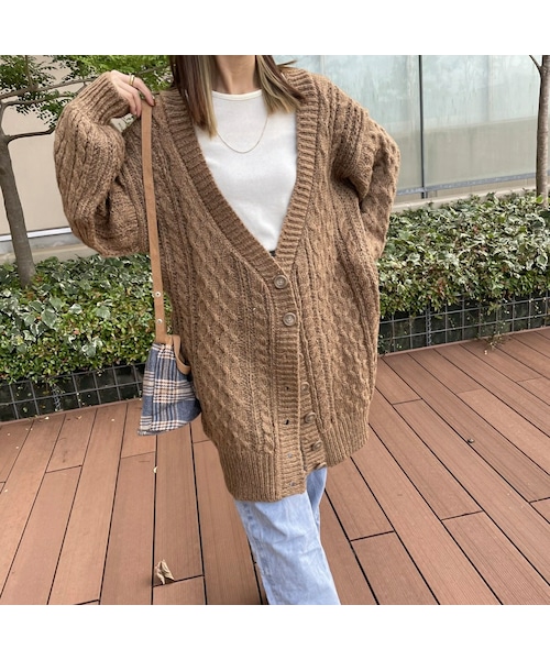 ざっくり、たっぷり存在感ある立体的なケーブル編みがアクセントのロングカーディガン。 オーバーサイズでゆったりとしたサイズ感に、バック部分はVネックデザインで華奢見せや抜け感を演出♩♩してくれます◎ 今年らしいロング丈で着回し抜群のアイテムです。 ※モデル身長:161cm ◾️カラー キャメル ◾️サイズ 着丈84cm、袖丈46cm、肩幅65cm、身幅60cm ※多少の誤差は予めご了承ください。 ◾️素材 アクリル 70% ポリエステル 30%