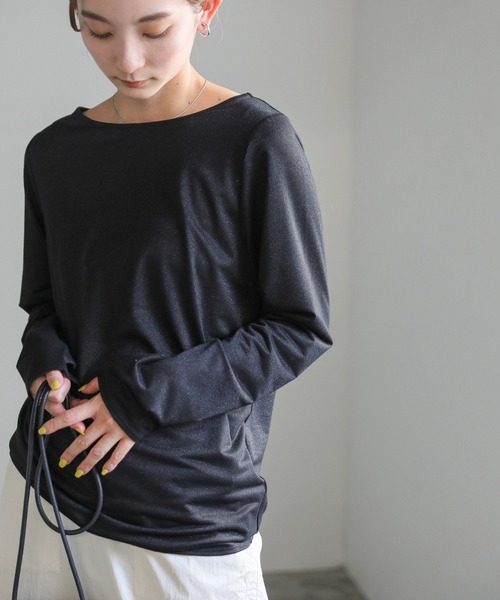 -point- & -styling-さりげないラメ感が今季らしいトップス。幅広めのクルーネックで顔周りをすっきりと見せ抜け感を演出。ラメ特有のチクチク感も気にならず、さらっとした肌あたりでストレスフリーな着心地です。タイトすぎず程よいゆとりがあるので身体のラインを拾いにくいのも嬉しいポイント。組み合わせやすいオフホワイト、グレー、ブラックの3色展開でご用意。コンパクトシルエットなので、ワイドパンツやフレアスカートなどボリューム感のあるボトムとのスタイリングがおすすめです。※素材の特性上、肌の敏感な方は刺激を感じることがあります。インナーなどの併用をおすすめ致します。コンパクトクルーネックロングスリーブカットソー----------------------------素材 レーヨン58%・ポリエステル38%・ポリウレタン4%----------------------------伸縮性 ★★☆☆☆裏地 なし----------------------------※モニター・環境等により実際の商品と多少色味が異なって表示される場合がございます。 予めご了承をお願いいたします。=======================■袋梱包の為、染料による特有の匂いが抜けきれず、匂いがする場合がございますが不良品にはあたりません。 上記注意点での返品、交換はお断りします。ご了承の上お買い求めくださいませ。■本製品は生産過程におきまして色味、サイズ感等若干の誤差が出る場合がございます。予めご了承くださいませ。=======================【お買いものをお楽しみいただく為に!】▼商品のお気に入り登録完売カラーの再入荷通知や、ラスト1点の通知、セールの通知も受け取ることができます。▼ブランドのお気に入り登録新商品や再入荷など、いち早くブランドのお得な情報を受け取ることができます!