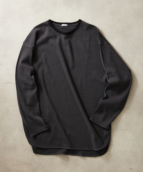 relume定番でロングヒットを続けているレイヤード用のラウンドTシャツの長袖サーマルTシャツバージョンが今回も登場! インナーにも個性を出したいというニーズにお応えして生まれたラウンドシルエットのTシャツ。 今回はベーシックカラーの3色にプラスして生成り×オリーブカラーの2トーンも1色ラインナップに加わりました。 男女問わず着用出来るユニセックスデザインで新色の2トーンはあまり見かけることのない一味違ったサーマルを楽しむことが出来ます。 しっかりとした落ち感のあるドロップショルダーに、程よくゆったりとした身幅に、大胆なスリットデザインで、着るだけでトレンドシルエットのスタイリングが完成。 一枚着としてもレイヤードコーディネートのインナーとしても活躍し、コスパの良いシーズンを通して重宝するアイテムに仕上がりました。 ********************** 裏地:なし 伸縮性:なし 光沢感:なし 生地の厚さ:普通 ********************** 【スタッフ着用コメント】 《スタッフH》 身長:173cm/体重:62kg/体型:中肉中背/普段サイズ:M/着用サイズ:L サイズ感: レイヤードしやすいようやや長めのサイズ感です。 素材感:さらっとした素材感です。 着心地:軽い着心地なので快適にレイヤードできます。 ********************** 《画像についてのご注意》 ※照明の関係により、実際よりも色味が違って見える場合があります。 またパソコン・スマートフォンなどの環境により、若干製品と画像のカラーが異なる場合もございます。 ※商品の色味は、商品アップ画像をご参照ください。 《商品のお気に入り登録について》 「カートに入れる」または「予約する」右側のハートマークを押していただくと、 再入荷、残り1点、セールなどの通知を受け取ることが出来ます。 《ブランドお気に入り登録について》 JOURNAL STANDARD relumeのトップページ右上にある「お気に入りブランドに追加」を押していただくと、 新商品や再入荷、ショップのおすすめトピックスなど、いち早くブランドの情報を受け取ることが出来ます。 本体:洗濯機洗い(弱)