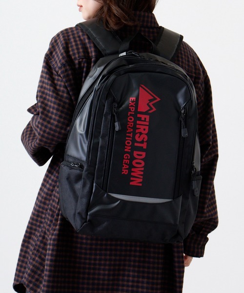 FIRSTDOWN■pointFIRSTDOWNのターポリン素材のリュック。容量25ℓでデイリーユースから通勤や通学・アウトドアまで幅広いシーンに活躍!風や汚れに強く、撥水性のあるターポリン生地を使用。ウレタンクッションを使用したPCルームを搭載。■detail・メインファスナー開閉(内側:メッシュファスナーポケット×1・PC収納可能パッド付ポケット×1)・サブファスナーポケット×1(内側:オープンポケット×2・ペン差しポケット×3・メッシュポケット×1・キーフック)・フロントファスナーポケット×2・サイド:ファスナーポケット×2■color・ブラック×ホワイト・ブラック×ブラック・ブラック×グリーン・ブラック×ピンク【お買いものをお楽しみいただく為の方法】★商品のお気に入り登録★・完売カラーの再入荷通知や、ラスト1点の通知、セールの通知も受け取ることができます。★ブランドのお気に入り登録★・新商品や再入荷など、いち早くブランドのお得な情報を受け取ることができます!