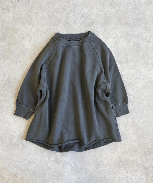 【BIG FIELD】定番人気のピグメント加工シリーズ!ラグランのステッチカラーがポイントです♪古着テイストの切りっぱなしの裾にもご注目!全体的にピグメント加工が施されているので、ヴィンテージ感漂う1枚になっています。薄手の生地感なので、アウターを羽織ってもごわつく心配がありません。ストンとした肩落ち感とヴィンテージの風合いで、こなれ感を演出してくれます。裾がラウンドになっているのもポイント◎モノトーンコーデからコーデの差し色になるカラーまで全部で3色展開♪レギンスやタイツと合わせて頂いたり、デニムとコーデしても可愛いですよ。。。長いシーズンお楽しみ頂けるアイテムです。◆両サイドにポケット付き■モデル着用アイテムシェフパンツ:0000132022【GARFIELD×FRUIT OF THE LOOM】別注KIDS CAPS:5251632012☆ピグメントって?表面のみに色をのせる加工の為、着古したような絶妙な色落ち感が楽しめます。適度に日に焼けたような色褪せた風合いがところどころにあり、同じカラー・同じサイズでも1枚1枚色の濃淡など風合いの違いがあります。(色合いにつきましては、お選び頂けませんので予めご了承くださいませ。)※カラー表記が「イエロー」となっていますが、実際のお色味はライトブラウンとなっております。ご購入の際は、画像のお色味を参考にお選びいただきます様お願いいたします。