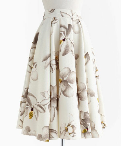 大きな花柄が目を引くミディアム丈のスカートです。春夏らしいさわやかなデザインで、ウエストからふわっと広がるフレアラインで脚長効果アリ!ウエストの後ろの方がゴムになっているので、トップスをインした時の見た目はきれいで、履き心地はラクチンです。 ※WEARに記載してある金額と、DHOLIC通販サイトに記載してある金額にシステム都合上誤差がございますが、正しい金額はDHOLIC通販サイトの方です。