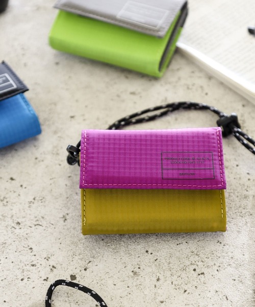 ーーーアウトドア感のある配色のバイカラーに、ミリタリー要素のあるデザインをプリントしたウォレット。生地はリップストップナイロンを使用し、丈夫で軽い作りに。付属のコードはグラスコードとしても使用が可能。コンパクトな作りですがお札、コイン、カードがしっかり収納できる仕様になっています。ーーー【お取り扱い注意】・自然光、照明等により、通常の使用でも変色する事があります。 また、雨や汗などによる、濡れた状態でのご使用は色落ちや色移りの原因となりますのでご注意ください。・洗濯、アイロン掛けはできません。ペンジン、アルコール、シンナー等の溶剤のご使用もお避け下さい。・ファスナー、ホック、ボタン、金具、ストラップ、ベルト等の付属物は正しくお使いください。誤った使用をされた場合、もしくは極度の負荷がかかった場合、 付属物および製品が破損または欠品する恐れがございますのでお取り扱いにはご注意ください。・この製品は落下や衝撃の際、内容物の保護はできません。特に精密機器、貴金属、割れ物等の破損しやすい内容物の保護には適していませんので、 ご使用の際はご注意ください。また、鋭利なものは通常のご使用でも製品を破損する恐れがございますのでご注意ください。-------------------------------------≪お買い物をよりお楽しみいただくために≫◆商品のお気に入り登録(ハートマークをクリック)完売カラーの再入荷通知や、完売間近の通知、セールの通知も受けることができます。◆ブランドのお気に入り登録新商品や再入荷など、いち早くブランドのお得な情報を受け取ることができます。-------------------------------------