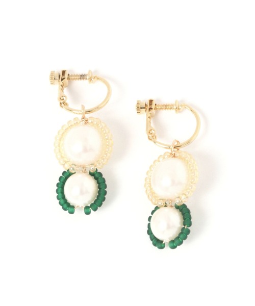 大人可愛い個性派アクセ パール調とビーズの組み合わせが個性的なイヤリング。 耳元で程よく揺れて目を引くデザインです。 シンプルコーデのワンポイントにもおすすめ。