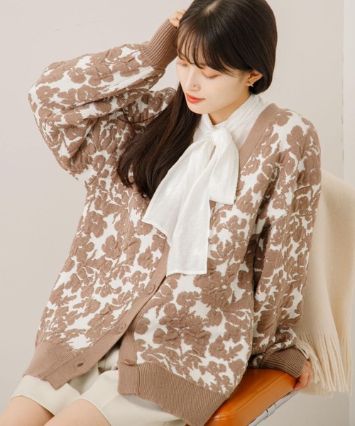 配色が利いた大人柄カーデ〇目を惹く配色とニュアンス花柄〇ぽこぽこした立体感〇深いVネックで使いやすいサイズ感stylingボウタイブラウスやカップ付きインナーを合わせ、サテンスカートなどの光沢感のあるボトムスを履いていただくと今年らしいスタイリングなりオススメです。【2023 Autumn/Winter】※商品画像は、光の当たり具合やパソコンなどの閲覧環境により、実際の色味と異なって見える場合がございます。予めご了承ください。※商品の色味の目安は、商品単体の画像をご参照ください。▼お気に入り登録のおすすめ▼お気に入り登録商品は、マイページにて現在の価格情報や在庫状況の確認が可能です。お買い物リストの管理に是非ご利用下さい。-----------------------------透け感:なし伸縮性:あり裏地:なし光沢:なしポケット:なし-----------------------------