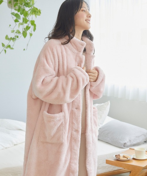 【デザイン】 POINT1 あたたかい素材で節電にも効果的! まるで毛布のような心地良さで、身体をあたためてくれるファーガウン。 ロング丈なので、冷えやすい足元までしっかりとカバーしてくれるのもポイント◎ 寒さが本格化する季節、お風呂上がりやご自宅でのリラックスタイムに活躍してくれます。 POINT2 男女ともに使いやすいベーシックカラー 普段使いもしやすいお色味でつけるシーンや人を選ばない。 POINT3 収納ポケット付きで便利◎ 内側ポケットに収納するとクッションとしてご使用しいただけます 【使用上の注意】 ・洗濯時はネットを使用してください。 白、淡色を含む製品は、蛍光増は白剤の入っている洗剤を使用しないでください。 濃色の場合は、汗や雨などで濡れた状態や強い摩擦等で他の製品に色移りする場合がありますのでご注意ください。 ・他のものと分けて洗濯後、すぐに形を整えて干してください。 ・素材の特性上、着用中にほかの衣料に毛羽がつくことがあります。その際はブラシ等を使用してください。 ・直射日光や照明等により、変色・退色することがあります。 ・着用後は長時間放置せず、すぐに洗濯してください。 【商品詳細】 【カラー展開】 チャコール ピンク 【サイズ】 着丈:110cm 身巾:75㎝ 【素材】 ポリエステル100% 【原産国】 中国 【効能・機能】 ・ホホバオイル配合 ・静電気が起きにくい ・軽量・保温
