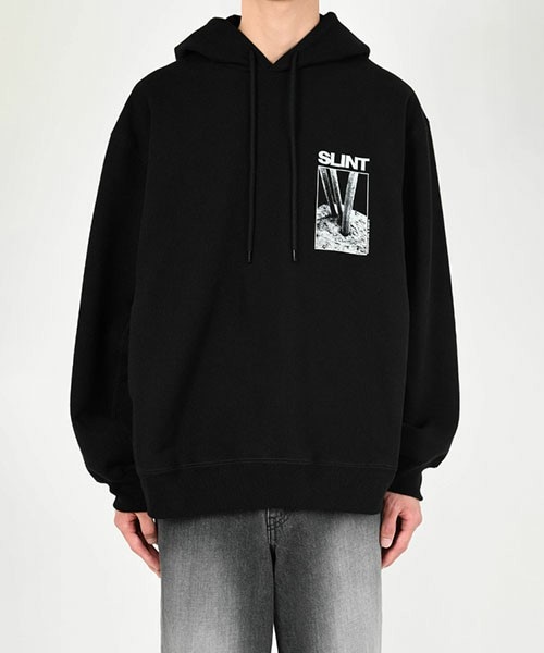 LAD MUSICIAN × SLINT 1986年にケンタッキー州ルイビルにて結成された、ポストロックの元祖といわれるバンド「SLINT」との コラボレーションパーカーです。 当時十代だった彼らが表現した“大人になることへの不安と解放”を、様々なアートワークや楽曲の歌詞、 バンドの貴重なアーカイブ資料や写真などからデザインし、フロントやバックにプリントで表現しています。 オリジナルの裏毛素材を使用したプルオーバーパーカー。 太番手の糸を使用し、度目を詰めて編み立てたしっかりとした素材です。 染色時に特殊加工を施し柔らかく仕上げています。 袖下から脇にかけてマチを設けたフリーダムスリーブにより腕周りの可動域を広げています。 シャープなフォルムにほどよくゆとりを持たせたシルエットが特徴です。