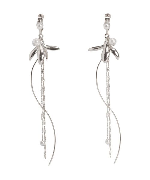 耳元で揺れる繊細なチェーンと金属のフラワーモチーフに、キラッときらめくクリアパーツや小粒パールが、一気に女性らしい華やかな印象に。高見えする金属のフラワーと繊細なチェーンが、落ち着いたエレガントな女性を演出してくれます。デイリーコーデにはもちろん、結婚式などのパーティシーンまでおすすめです。