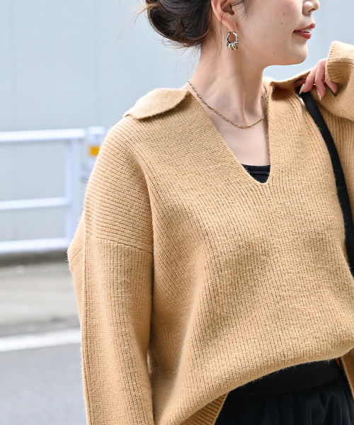 【2023AW】 B.C STOCK 抜け感のあるシンプルな畦編みのニット。 襟付きなので大人っぽくシャープな印象が特徴です。 レイヤードするインナーを選ばずに着られるので、様々なスタイリングを楽しめます◎ 手洗い可能でご自宅でのイージーケアができるのも嬉しいポイントです! ********************** 透け感:なし 裏地:なし 伸縮性:ややあり 光沢感:なし 生地の厚さ:普通 ********************** 【スタッフ着用コメント】 《スタッフ staff.s》 身長:165cm/普段サイズ:M/着用サイズ:フリーサイズ サイズ感:ゆったりとしていて、体型をキレイにカバーしてくれます。 素材感:ミドルゲージのアゼ編みです。 着心地:リラックス感のある着心地です。 ※あくまで個人の感想です。 ********************** ※取り扱いについては、商品についている品質表示でご確認ください。 着用中の摩擦や、汗、水濡れにご注意ください。濡れたままの状態で擦れると、色移りすることがあります。 ※こちらの商品は、B.C STOCKでの取り扱いになります。直接店舗へお問い合わせの際は B.C STOCK店舗へお願い致します。 ※照明の関係により、実際よりも色味が違って見える場合があります。 またパソコン・スマートフォンなどの環境により、若干製品と画像のカラーが異なる場合もございます。 ※商品の色味は、商品アップ画像をご参照ください。 ホワイト着用スタッフ:163cm 着用サイズ:フリー ブラック、ベージュ、レッド着用スタッフ:157cm 着用サイズ:フリー 詳細着用スタッフ:162cm 着用サイズ:フリー 本体:手洗い可能